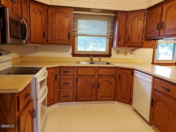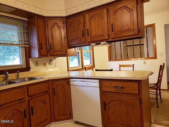 Unique opportunity to purchase a home overlooking the valley of Richardton. House was originally built by the Abby and is backed up to beautiful Abbey land. Gaze through the living room picture window to the private forested land complete with wildlife. Home has hard to find 3 bedrooms on the main, kitchen w/ quality cabinets, large sunroom, laundry hookups on both levels (comes with 2 washer/dryers), walkout basement, 2 more basement bedrooms (1 nonconforming), and a beautifully landscaped yard with edibles and florals. Don't miss the very cute tuck under workshop. Updated windows fold out for easy cleaning and roof was done in 2019. This quality crafted home was built without shortcuts and won't last long. Arrange for a showing today!