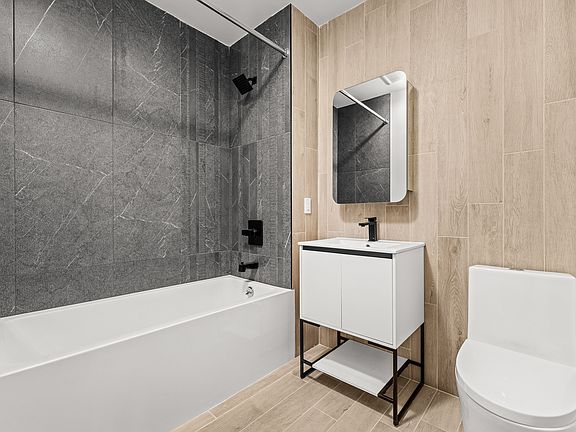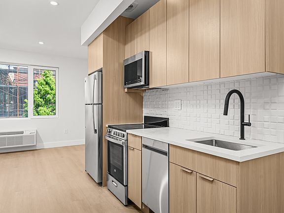 Modern Studio in Brand-New Building East Flatbush Welcome home to this bright, thoughtfully designed studio at 102 E 53rd Street, a brand-new rental building in the heart of East Flatbush. This unit features a sleek open layout, oversized windows for great natural light, and modern finishes throughout. The contemporary kitchen is equipped with full-size stainless steel appliances and generous cabinet space. The living/sleeping area easily accommodates a bed, sofa, and workspace, while the spa-like bathroom adds a touch of luxury with clean, stylish tilework. Residents enjoy access to a stunning rooftop deck, lounge areas, bike storage, and more all in a quiet, residential Brooklyn neighborhood with convenient access to the 3 and 4 trains. Affordable, modern living in one of Brooklyn's most connected communities.
