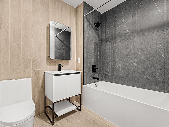 Spacious One-Bedroom in Brand-New East Flatbush Building This sun-filled one-bedroom at 102 E 53rd Street offers the perfect blend of space, style, and comfort in a newly constructed building. Featuring a smart layout with clearly defined living and sleeping areas, the unit is ideal for both relaxing and entertaining. The kitchen boasts full-size stainless steel appliances, modern cabinetry, and ample counter space. The living room is bright and airy, while the bedroom easily fits a queen-sized bed with room to spare. Enjoy sleek finishes throughout, oversized windows, and a serene, spa-inspired bathroom. Residents of the building enjoy access to a beautifully furnished rooftop deck, cozy lounge areas, bike storage, and more all set on a tree-lined block in East Flatbush, with nearby access to the 3 and 4 trains. Modern living, Brooklyn charm, and unbeatable value.