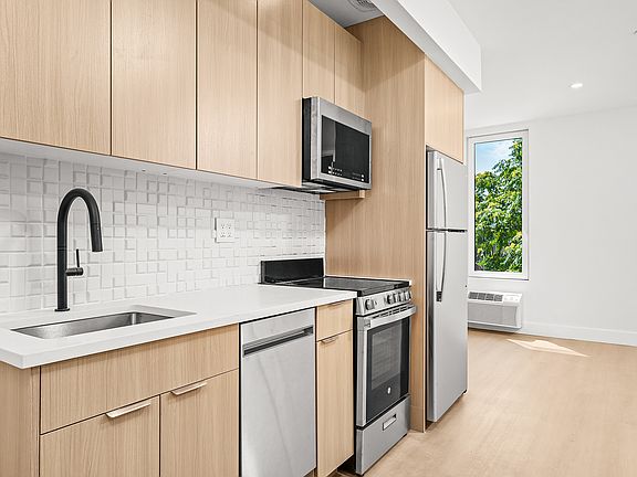 Spacious One-Bedroom in Brand-New East Flatbush Building This sun-filled one-bedroom at 102 E 53rd Street offers the perfect blend of space, style, and comfort in a newly constructed building. Featuring a smart layout with clearly defined living and sleeping areas, the unit is ideal for both relaxing and entertaining. The kitchen boasts full-size stainless steel appliances, modern cabinetry, and ample counter space. The living room is bright and airy, while the bedroom easily fits a queen-sized bed with room to spare. Enjoy sleek finishes throughout, oversized windows, and a serene, spa-inspired bathroom. Residents of the building enjoy access to a beautifully furnished rooftop deck, cozy lounge areas, bike storage, and more all set on a tree-lined block in East Flatbush, with nearby access to the 3 and 4 trains. Modern living, Brooklyn charm, and unbeatable value.