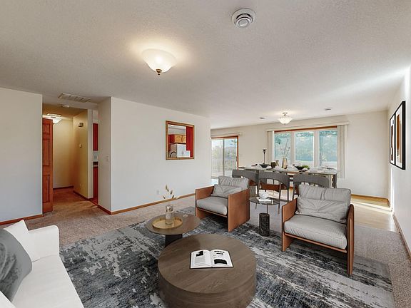 Well maintained, slab on grade townhome that presents the perfect opportunity to simplify your life. The floor plan offers an open concept living and dining area, a galley style kitchen with plenty of prep space, and the bedrooms are spacious with lots of storage. You will love the primary bedroom suite featuring a 3/4 bath with a step-in shower, and a huge walk-in closet. There's an attached two car garage for your convenience and the deck offers the perfect spot to unwind at the end of the day. Deck also has a remote controlled awning to shade you on the hot days. HOA fee covers lawn care and snow removal. Roof is less than 5 years old. Don't wait to downsize - this one is move in ready!