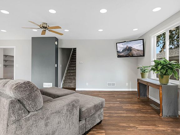 NEW, NEW, NEW is the best way to describe this home! Nestled under a canopy of mature trees & surrounded by beautiful landscaping, find this freshly updated story & a half home, ready for new owners! This home has been extensively remodeled, taken down to the studs & re-insulated with spray foam for high efficiency heating and cooling. The main living space is open & bright, accented by gorgeous vinyl plank flooring. You will love the neutral color pallet, ready for your home design! The floor plan is functional & offers a main floor bedroom, 3 bedrooms + bonus loft space upstairs, & a finished basement. The kitchen has great space & storage highlighted with a pretty stone backsplash. Other updates include roof, siding & windows (2016), furnace/AC (2014), water heater (2015), lower level carpet (2023) & so much more! Don't miss the oversized two stall garage & stunning hardscape area for entertaining outdoors plus convenient location for easy commuting. This one is sure to impress!