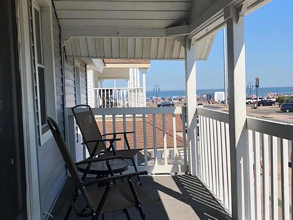 Stunning ocean views from this nicely furnished second floor ANNUAL rental located three houses from the beach & boardwalk! Unit was just renovated (2018), features an oceanfront covered balcony, one assigned off-street parking space, refinished hardwood floors, new central a/c & gas forced air heat, updated kitchen (new counter-tops, sink, back-splash & dishwasher), two updated full bathrooms, fresh paint & washer/dryer in unit. This is a perfect opportunity to enjoy ocean views all year round! No pets, no smoking!
