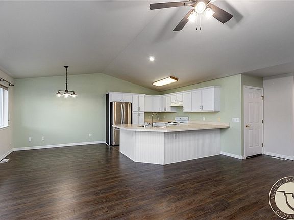 Great buy, zero entry end unit townhouse 2 bed 2 bath, master suite, open floor plan. New solid surface flooring, vaulted ceiling, and an attached one car garage. Low stress peaceful place. HOA covers exterior maintenance, lawn care, underground sprinklers, and snow removal. Some recent concrete replacement and driveway resurfaced. Appliances include an extra frig in the garage, and the washer/dryer. This is an end unit, new construction to the west of 3-4 plex units in the future. List agent related to seller.