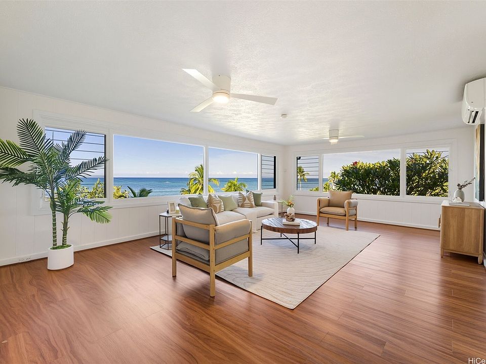 Exceptional Lanikai opportunity. Positioned just above the Lanikai entry, this elevated home enjoys sweeping ocean and Mokulua Islands views while remaining an easy stroll to the beach. The setting is private and lush, with terraced lava rock walls, tropical landscaping, and a flat back lawn perfect for entertaining or relaxing. FEMA flood zone X. This classic two-story Hawaiian beach home has been beautifully refreshed with a new kitchen, new flooring, new fixtures including two Toto bidet toilets, and split A/C in every room. Energy efficiency and comfort are built in with 32 owned solar panels, 3 Tesla Powerwall batteries, EV charger, new hot water heater, and new electrical panel. Additional highlights include new Lutron lighting throughout, a new second-floor deck with ocean views, upgraded windows, new plumbing, a Wi-Fi sprinkler system, and a security alarm. Actual square footage differs from tax records. Inquire about the pending opportunity to acquire adjacent City of Honolulu roadway parcels that could significantly expand the land area. Showings by appointment only