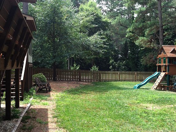 WOODS OF KILDAIRE home offers 4 bedrooms, 2.5 baths, 3 car garage. Large flat fenced back yard with oversized deck. Tons of storage. Open floor plan. Kitchen includes SS appliances and granite countertops in 2010, interior painted 2010, new roof 2009, hot water heater 2009, screen porch converted to sunroom/ playroom 2013. Great neighborhood. Easy access to I-40, US 1 and 64, rdu, rtp, downtown raleigh in 10 mins. Don't forget to walk to trader joes!