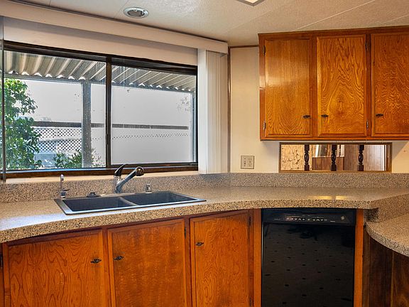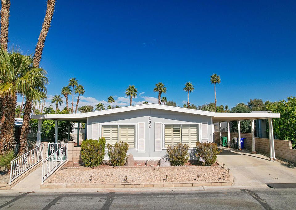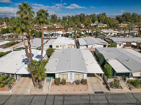 OK so I'm not the prettiest house on the street, but you could change that! Opportunity knocks and invites you to come and make this your very own pride of the neighborhood. Although in original condition it has 'good bones' as they say. Two large living areas...a formal living/dining room and a family room attached to the kitchen. Generous primary and second bedrooms both with ensuite bathrooms. Open kitchen area has a gas cooktop, granite counter top and double sinks looking out to our beautiful mountains. Enjoy the separate laundry room with the always welcome sink. Just waiting for your creative ideas for a transformation is the large patio with a yard that wraps around the entire property. For the extra storage we all need this home has a large secure storage shed and a smaller one for your tools or gardening equipment. Owners pay a monthly space rental fee which is rent controlled by the city of Rancho Mirage. NO ADDITIONAL HOA FEE AND IT IS A FAMILY FRIENDLY community. This fabulous, gated park is a fun/welcoming community offering terrific resort amenities: a clubhouse, fitness center, library, billiard room, community pool, two spas, tennis, pickle balls & basketball courts, BBQ area, and hair/nail salon. Pet-friendly green belts w/walking paths. Come have a look today!