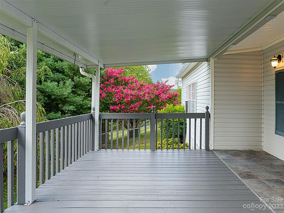 Privacy, with open spaces, inside and out, are the theme of this well cared for, gently lived in home. Featuring oversized covered porches on the front and back, as well as generous living spaces inside, you'll find plenty of room to enjoy the country feel of this home even though it is only 5 minutes to New Belgium and the River Arts District and less than 10 minutes to downtown Asheville. The interior features a spacious, split bedroom floor plan, huge primary bedroom closet, gas fireplace, open kitchen with island and sliding glass doors leading from the great room to the covered back porch. The porch then leads to a fenced-in backyard with plenty of grass and shade, in addition to a storage shed. At the end of the day, relax on the rocking chair front porch with your favorite beverage and take in the mountain views. All hard surface flooring in the main living areas and new carpet in the bedrooms; ** OFFER DEADLINE IS 5PM SUNDAY, 9/3.**
