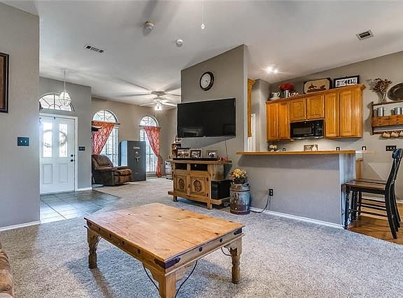 8.4 Beautiful acres in Peaster ISD! Immaculate 3 bed 2 bath home with open floor plan and large living room. Expansive master suite with newly remodeled master bathroom. New paint and new carpet throughout. Beautiful galley kitchen with wood floors. Stunning back patio surrounded by scattered mature oak trees to enjoy the cool summer breeze. 4 stall horse barn with feed and hay storage. The property is complete with a Breaking Round pen and 30x40 workshop that has an interior office. New perimeter fence and cross fencing. Loafing sheds in the pastures. Brand new automatic gate with keypad. Excellent sandy soil. The perfect set up for you and your livestock!!