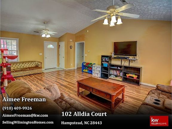 ***Call 910-409-9926 for more information. Exclusively offered by Aimee & Co with Keller Williams Realty.Prepare to be impressed! As you drive up to your new home, you are first excited by the gorgeous lot on which it sits. You also notice that there are only a few other homes on this cul-de-sac street. You walk up to the door & imagine yourself enjoying your morning coffee on the rocking chair front porch. You push open the door, walk inside & immediately fall in love with the open floor plan. The living room is HUGE & that vaulted ceiling! The home is bright & inviting. The kitchen has an abundance of white cabinets & counter space. Plenty of room to spread out & create amazing dinners. The kitchen is equipped with all appliances. This is a split bedroom floor plan for added privacy. All three bedrooms are oversized & spacious. The laundry room is a full sized room & the seller is even leaving the washer & dryer for you. Your back yard is incredible. Enjoy evenings grilling out on the back deck. BONUS -Topsail schools, no HOA, 100% USDA financing avail & one year home warranty included.