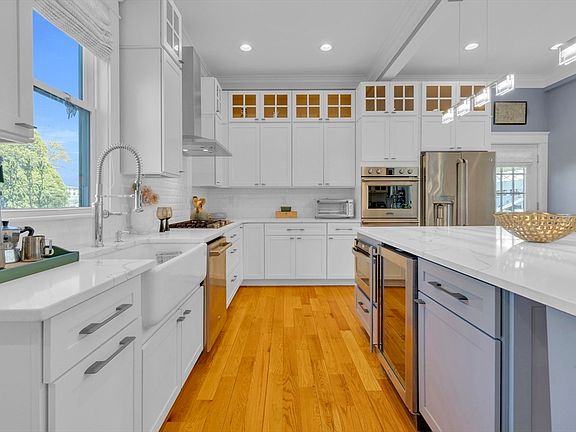 Victorian era charm meets modern luxury in this fully renovated Bellevue Hill home, perched on a corner lot on coveted Anawan Ave. The first floor boasts an open layout, ideal for both living and entertaining, featuring a gourmet kitchen with top-of-the-line appliances, a dining room, sitting area, separate living area, half bath and 2 gas fireplaces. Upstairs you’ll find ample retreat space. A primary bedroom with custom closet and bathroom with steam shower, plus 3 bedrooms, 2 full baths and laundry await on the 2nd floor. The 3rd floor offers a second primary bedroom with ensuite bath, plus a sauna and office - this area can be used in a multitude of ways! You’ll be treated to sweeping views of downtown Boston from the peak of the home, the turret! Enjoy outdoor living on the rear deck and serene patio with mature landscaping. With a bus stop at your doorstep, Bellevue MBTA stop less than .5 miles away and the many attractions on Centre Street, the city is right at your fingertips!