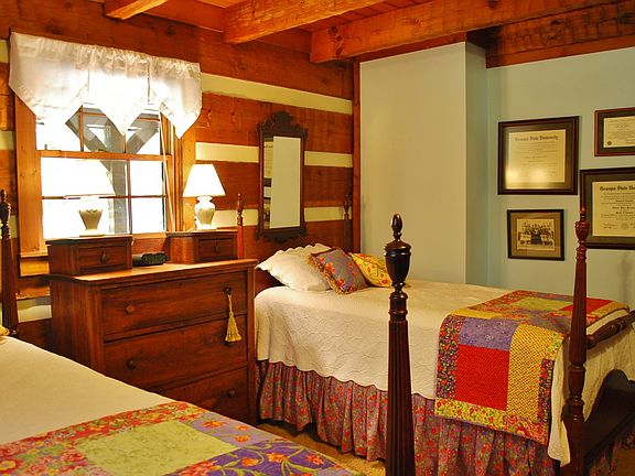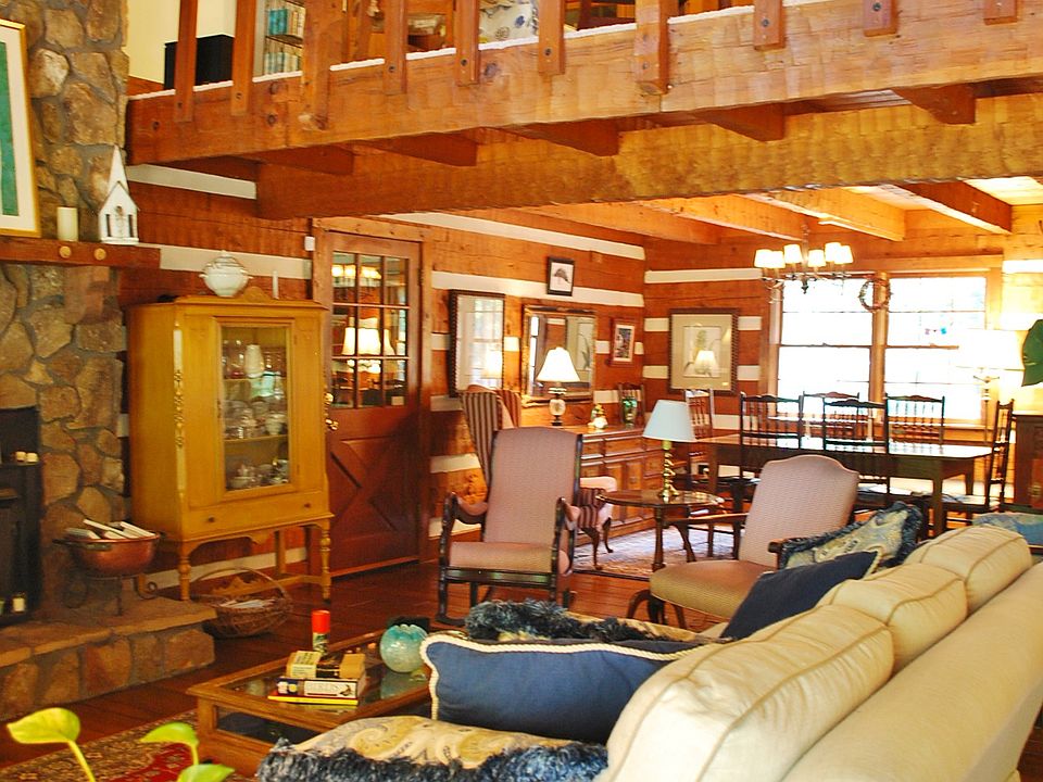 - Interior: Cable TV Connections, Ceilings - Vaulted, Garden Tub, Tile Bath, Hardwood Floors, Carpet, Exposed Beams