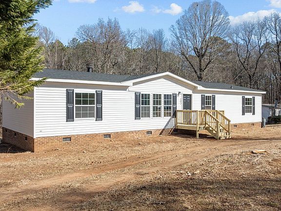 This stunning 3-bedroom manufactured home offers the perfect blend of modern updates and serene outdoor space. Nestled on a spacious .69-acre lot in a great Wake Forest location, you'll enjoy easy access to schools, shopping/dining, entertainment venues, and major highways. Inside, the highly sought-after split-bedroom floor plan boasts beautiful LVP flooring, crown molding, fresh interior paint, and modern fixtures throughout. The bright and welcoming entry opens to a formal Dining Room and Living Room, where a charming corner fireplace with a white decorative mantle surround serves as the focal point. Relish cooking in this white-cabinet Kitchen adorned with Granite counters, brand-new SS appliances, and a functional layout perfect for meal prep and entertaining. The impressive Primary Suite includes a massive walk-in closet and an en-suite bath featuring white cabinetry, a separate shower, and a soaking tub as the centerpiece. Two additional bedrooms, both with walk-in closets, share a stylish full bath. Step outside to a brand-new spacious deck overlooking the tree-lined backyard. Additional features include a new Roof and HVAC, a generously sized Laundry Room, fresh gravel driveway, and a charming new front porch.