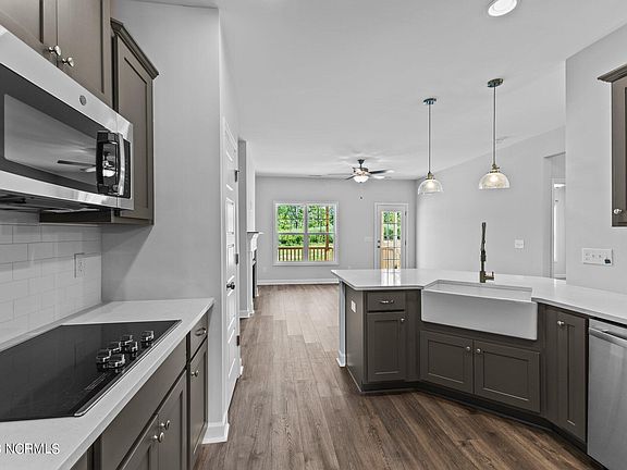 $5k DESIGN CENTER INCENTIVE W/CONTRACTS BY 6/16/23! Huge RockingChair Front Prch! 7.5'' WidePlank HwdStyleFlrng Thru MainLvng w/10Yr Pet & Waterproof Protection! ''First Star'' DesgnrPaintColor ThruOut! Kit: ''Graphite'' Painted Cbnts w/Crwn, Corner Lazy Susan & Nickel Hardware, ''Carrara Cloud'' Quartz, White Subway Tile Bcksplsh, RcssdLghtng, Gourmet Kitchen Layout Incl GE SS Appliances- Cooktop, Double Wall Oven & Vented Micro! Breakfast Bar, DsgnrPendantLghts & White Farmhouse BarclaySink w/Nickel PullOut ''Foodie'' Coil Faucet! Mstr: TreyCeilng, PlushCarpet & CeilngFn! MstrBth: ''Graphite'' Painted Dual Vanity w/''Blanco Matrix'' Quartz & RectangleSinks! Priv WaterClst w/ComfortHeight Elongated Toilet, 12x24 Tile Floor, WalkIn Shower, Sep GardenTub & WalkIn Closet! FamRm: Gas Log Fireplace w/Slate Srrnd & CstmMantle! CeilngFan & French Door Access to Covered Deck! Both Secondary Bdrms Upstairs w/WalkInClsts! DiningRm w/''Silvermist'' DesgnrPaintColor, 5' Wainscoting, CofferedCeilng & DsgnrChandelier!