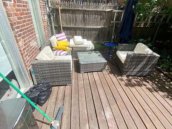 Magnificent apartment with unbelievably high ceilings and a private backyard/deck. The living room is absolutely stunning with floor to ceiling windows which receive a tremendous amount of natural light. The private garden is like an oasis and can easily fit plenty of outdoor furniture and a grill. There's a sizable dining area off of the living room. The bedroom can fit a queen sized bed and a WFH area. The kitchen is fully equipped including a dishwasher. There are also washer/dryer hook ups. Call Jack today for an in person tour.