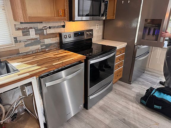 3 Bedroom 2 bathroom located on a private lot. Newly installed waterproof flooring through out the whole house (Exception 1 BR). Needs painting. Brand new shingles on roof. Fenced in backyard. Whirlpool appliances (Brand new) all stainless steel. Butcher block counter tops. Singled sink with garbage dispose underneath. Has new recessed can lights in ceilings. New light fixtures. New plumbing with home water filter system. It is a singe wide mobile home. 76x16. It is a work in progress. My tenant didn’t listen to anything in my agreement about the remodeling of the house. Took it upon themselves to make changes without my permission. The person is no longer living in the property myself and daughters have shortly come back to make sure it stays in good standings and make changes back to its original state. With any questions text my number as stated I still owe on this property, when payment is received I will have the contract ready and at the time sign the deed over.