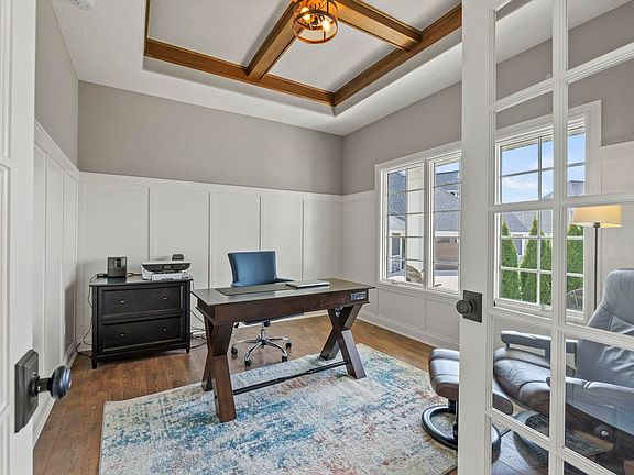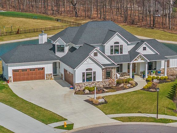 Situated in the prestigious Whisper Rock community, this stunning custom home is nestled on a tranquil cul-de-sac setting by a picturesque pond with a wooded view. The large backyard allows views of two ponds and the woods and has plenty of room for a pool. The residence is adorned with numerous upgrades, reflecting meticulous craftsmanship. The home's exterior captivates with its curb appeal, complemented by a picturesque, covered porch, an idyllic spot to relax on the porch swing & enjoy the sunsets. Upon entering, the high ceiling immediately commands attention, enhanced by the impressive two-story windows that bathe the interior with natural light and offer captivating views from the great room and dining room. The main level also features a dedicated office, complete with a decorative beamed ceiling, French doors, a closet, and refined wainscoting. The primary suite on the main level serves as a luxurious retreat with stunning views. The en-suite showcases double vanities, tile flooring, a spacious walk-in closet, a garden tub, and a massive dual shower. The heart of the home is its expansive open kitchen, boasting custom Zehr cabinets, granite countertops, tile backsplash, pot filler, coffee bar, eat-in dining space, and generous pantry. The immense island brings additional seating to the kitchen. Step out from the kitchen onto the expansive deck with panoramic views of woods and water. The hearth room, off the kitchen, offers a retreat with built-in bookshelves, a stunning stone fireplace, and a whitewashed shiplap cathedral ceiling. The upper-level houses 3 generously proportioned bedrooms, with tray and cathedral ceilings. One bedroom boasts an en-suite bathroom and generous closet, while the remaining two bedrooms share a convenient Jack-and-Jill bathroom. All granite countertops. The fully finished daylight basement provides ample space for entertainment and versatility, featuring a full kitchen, a dedicated movie space, a spacious great room, a bedroom with a large walk-in closet, a full bathroom, a storage room, and an additional multipurpose room suitable for exercise, crafting, or office space. Additional features include Anderson windows, Thera-Tru doors, fresh paint throughout, & new carpet on the main and upper levels. The roomy 4-car garage opens into a drop zone, complete with custom cubbies. The mechanicals feature apex plumping and zone heating with two furnaces. It is Just a short stroll to the Pufferbelly Trail & Payton County Park.