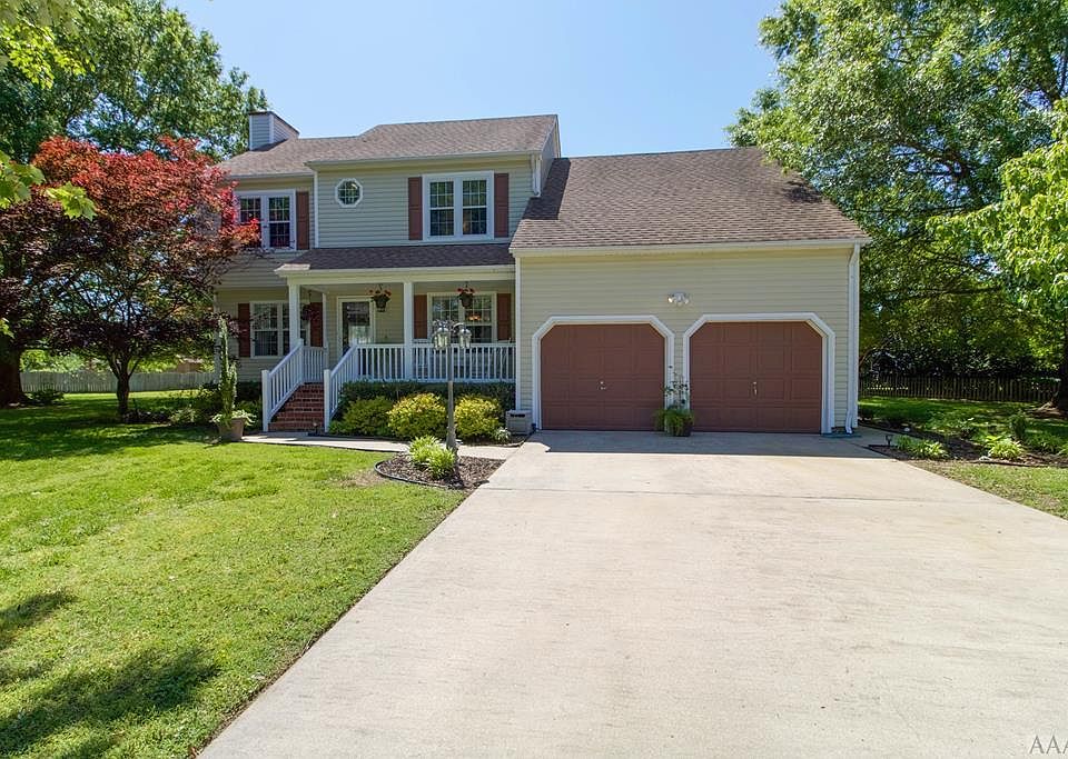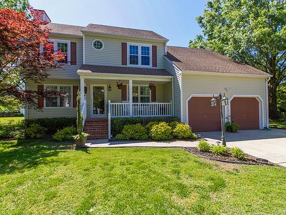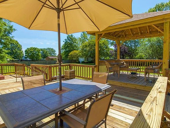 Just in time for summer! This well maintained home is move-in ready! 3 Bedrooms 2.5 Baths w/large FROG can be a 4th bedroom. Loads of outside entertaining space with a large deck, hot tub & pergola. Large master w/ double closets. Renovated master ensuite w/ double vanity, garden tub & tile shower. Spacious kitchen w/ Corian countertops, beautiful glass cabinet detailing & stainless appliances. Formal dining room & a large living space with a gas fireplace perfect for gatherings. Approx 5 miles from the VA line! No flood zone & No HOA! Carpets recently cleaned & home has been power washed.