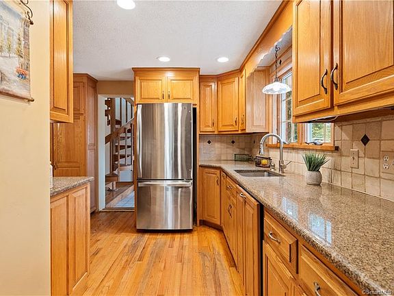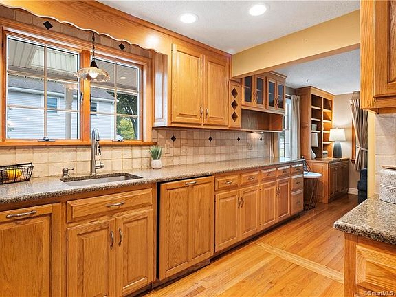 Located in Rocky Hill, this quintessential New England Cape with a wraparound porch is move-in ready! Featuring 4 generous size bedrooms, 2 full bathroom, and 2 half bathrooms. The mudroom is the perfect spot to drop those wet boots and enjoy the soapstone wood burning stove. With a gas range, SS appliances, granite countertops, and custom cabinetry your kitchen is a great place to cook up a great meal or enjoy entertaining. The den has a gas fireplace for those chilly New England evenings. A beautiful office with custom built-ins wraps up the main level of the home can also be used as a 5th bedroom. Upstairs you'll find a huge primary bedroom with sliders to a new large deck overlooking the treed yard with a bonus room connected and laundry. Additionally upstairs you'll be welcomed by 3 additional bedrooms and a full bath. For additional living space, a gym, playroom, craft room, you have a finished basement which has a cedar closet, dry bar, fireplace, and a half bath. This home is walking distance to Elm Ridge Park. Don't delay!