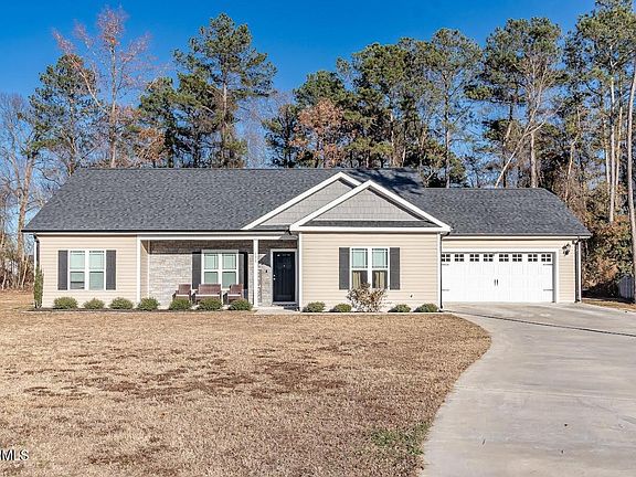Just a short 15 min from Seymour Johnson AFB, this 3 bed, 2 bath ranch home, only 2 years old, is a stunner! LVP flooring throughout the main living areas, a semi-open floor plan, and high ceilings all make this home feel even more spacious! In the kitchen you'll find granite countertops, tile backsplash, and stainless appliances. The split floor plan offers some privacy to the master bedroom, which features an en suite with dual sink vanities, walk in shower, large garden tub, and a HUGE walk in closet! Two very large guest bedrooms and a guest bathroom featuring two sinks complete the interior. Outside you'll find a private backyard with a patio and a two car garage. This home is situated in a cul-de-sac offering privacy from the main neighborhood road. Don't miss out on this gem!