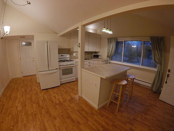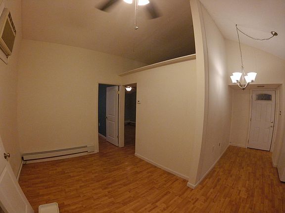The house has hot water baseboard heat, fenced in yard with stockade fencing. High vaulted ceilings newly renovated bathroom.