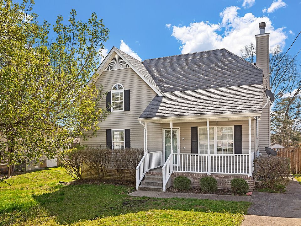 Charming home in Lebanon with 3 bedroom and 2 bathrooms and a welcoming covered front porch. Soaring ceilings in the main living room with a beautiful fireplace and mantle. The kitchen boasts white cabinets, modern backsplash, and space for a cozy breakfast nook. The primary suite is located on the main floor with a spacious closet and full bathroom nearby. The bathroom features hexagonal tiles floors and tub/shower combo. 2 generous bedrooms and a shared full bath upstairs. Back deck w/ above ground pool, great for summer entertaining! Seller will clean pool before closing. AS-IS sale, pass/fail inspections welcome
