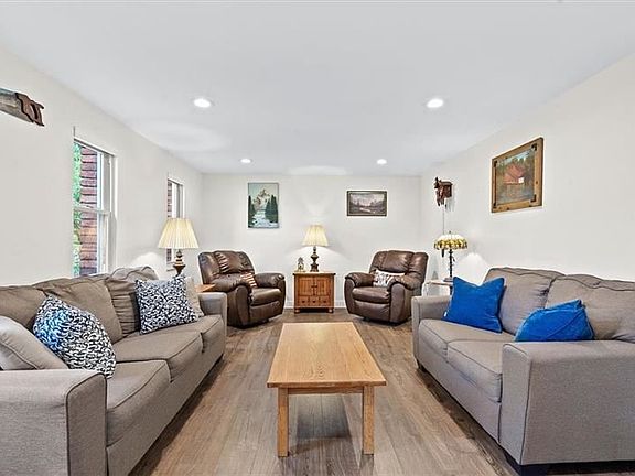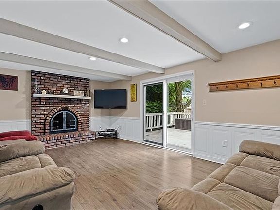 Absolutely Stunning 4 Bedroom home with 3 Fireplaces in a wonderful neighborhood!!! Features include a recently updated white kitchen with quartz countertops, marble backsplash, stainless appliances, a kitchen island, and newer lighting! There is Newer flooring throughout most of the home, updated bathrooms, a spacious living room with recessed lighting and lots of windows, a family room that has a beamed ceiling, a gorgeous brick fireplace, wainscoting, and a sliding glass door leading to the multi-leveled deck, and there is a formal dining room which also has wainscoting! The master bedroom suite has cathedral ceilings, a brick wood-burning fireplace, and a full bathroom. The basement is finished with a brick wood-burning fireplace, tile flooring, laundry hookups, a storage room ideal for a wine cellar, and a powder room. One of the best features is the AMAZING large-level fenced-in backyard!! This home is located close to shopping, restaurants, and major highways!!!