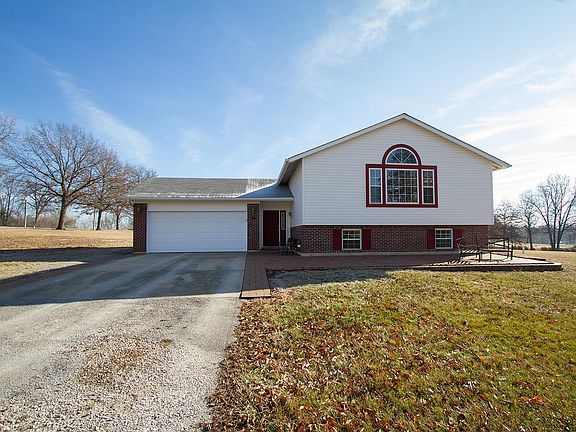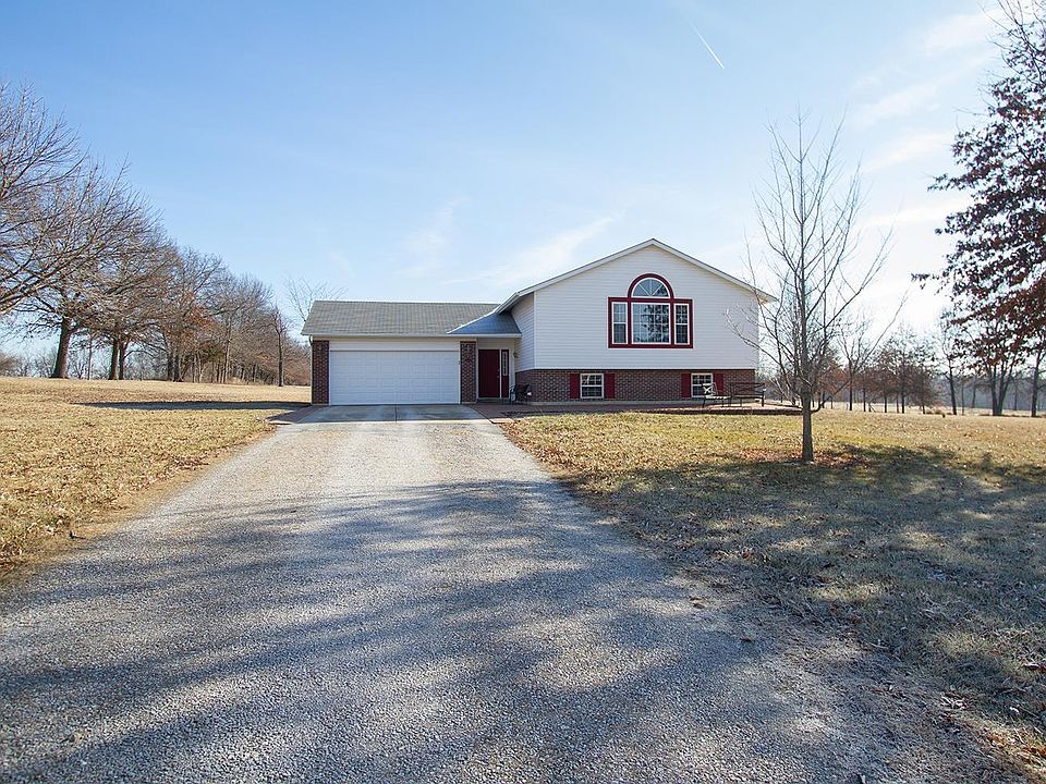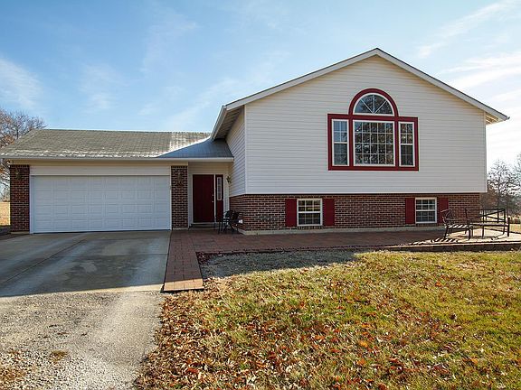 This is a beautiful home on 3 acres in great location! Large Vaulted and open floor plan greets you with huge picture window-separate dining area with newer laminate floors-cherry cabinets and ceramic tile floors in kitchen-vaulted master bdrm with bay door walking out to deck-finished lower level with huge family room, w/b fireplace, 1/2 bath & a 4th bdrm-great commute to St. Charles County. Sq. footage includes lower level-oak & peach trees, garden and grape vine-1 year home warranty offered-new roof-high speed fiber internet-newer HVAC-drywalled and insulated garage with 220 electric and newer garage door
