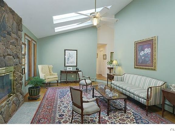 This delightful California contemporary w/vaulted ceilings, skylights & convenience is situated on a level landscaped acre in a popular SW New Canaan cul de sac. Bright & spacious w/one flr/living it boasts a flexible open floor plan & is just perfect for entertaining & family life. The updated eat-in kitchen is open to a sunny family room w/soaring ceiling & wall of windows overlooking the blue stone terrace & gardens. This home is comfortable, open & stylish...a great buy! Gas line easement on southern edge of property. 2nd Refrigerator in Kit closet included. Pool site avail. Exterior of house panted April 2015