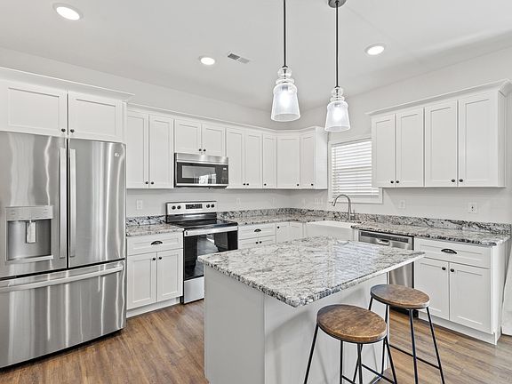 Nestled in a quiet cul-de-sac, this stunning home offers the perfect blend of modern comfort and timeless charm. Step inside to an open-concept kitchen bathed in natural light, featuring stylish granite countertops, stainless-steel appliances, and eye-catching farmhouse sink. A spacious walk-in pantry and convenient mudroom with garage access add to the home's thoughtful design. The inviting family room, featuring a cozy gas-log fireplace, floating shelves, exposed beams, and tall ceilings, creating a warm and welcoming atmosphere. Just off the foyer, a formal dining room and a versatile flex room offer plenty of space for a den, home office, or a personal retreat. Beautiful flooring flows throughout the home, leading you upstairs to your private primary suite, complete with a walk-in closet and a spa-like bath with a granite double vanity. Three additional generously sized bedrooms provide ample space for family and guests. Outside, a covered patio with a privacy fence creates the perfect retreat for relaxation. The original homeowner went all out with premium builder upgrades, making this home a must-see!