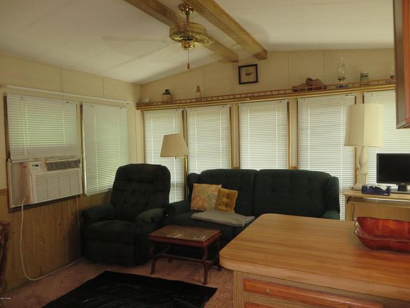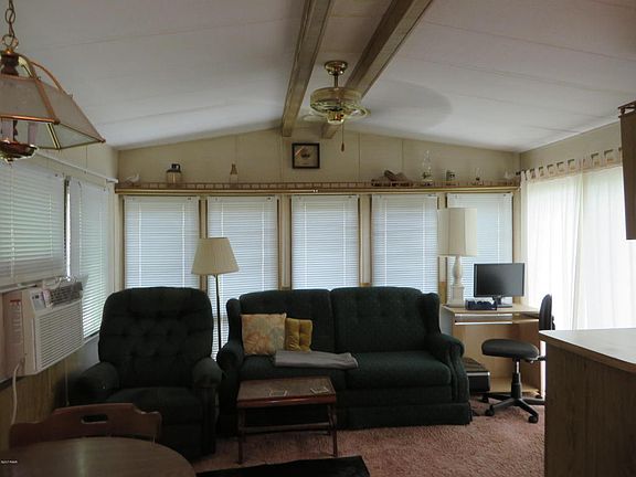 Bright and airy park model RV with vaulted ceiling, large, open great room and lots of windows. Lots of closets. Spacious deck has screen room ready to be set up. Great,affordable getaway. Get in for the season, call today!