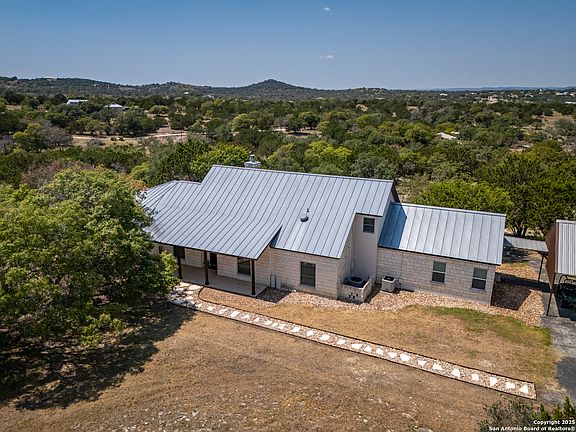 Welcome to Comfort, Texas - Where the Hill Country charm meets modern convenience. This homes sits on 18 AG exempt acres with no HOA, it's gated, offering both privacy and freedom. The main home features 3,038 sq. ft. with an open floor plan, 4 bedrooms, as well as 3 full bathrooms. The kitchen has been recently updated with new appliances, fresh paint in the main living area. The exterior of the home has been repainted including the back decks. Fiber optic internet ensures your can work from home or enjoy seamless streaming. Step out to the expansive back deck, and take in the stunning Hill Country Views for miles, or unwind in the hot tub as you watch the sunset. The property is fully equipped for ranch life and recreation, with RV storage and electrical hookups, totally fenced and cross fenced, cattle pens with squeeze chute, horse stalls, a chicken coop and two enclosed pole barns. There's also a four-car covered parking area complete with a Telsa wall charger. Nature lovers and outdoor enthusiasts will appreciate the abdundance of wildlife on the property, including whitetail deer, axis, and turkeys. Hunting is allowed, making this a true sportsman's paradise. A large Generac backup generator offers peace of mind, while a paved driveway leads from the main road to the house for added convenience. The home itself features a metal roof, soaring ceilings, and cozy wood burning fireplace in the living room. Every window frames a picturesque view of the surrounding landscape. With easy access to I-10, and just 15 minutes from Comfort and downtown Boerne. This property offers the blend of rural tranquility and modern lifestyle. Short drive to the Texas Hill Country wine country of Fredericksburg. Boerne Lake is 10 minutes away off I-10. Come and enjoy the fresh air and bright stars of the Texas Hill Country.