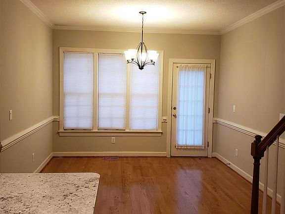 3 bedrooms , 2.5 baths + loft. Eat-in kitchen includes dishwasher, stove, microwave, disposal and refrigerator. center island. Granite counters and tile back splash. New appliances. Dining room. First floor master suite has walk-in closet, stall shower+ whirlpool tub, double vanity. Hardwood floor in master. Fireplace. 2 bedrooms + loft on second floor. Deck. 2-car garage. Lawn maintenance included in rent.