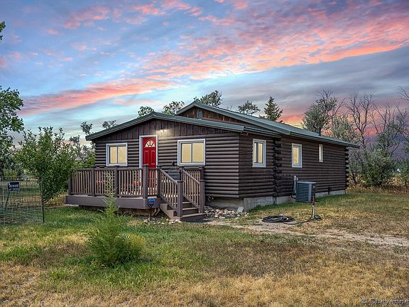 Enjoy Mountain Views, Acreage with No Covenants. This home on almost 11 irrigated acres boasts close-in rural. Immaculate custom log home. All structures have metal roofs. Filled will every amenity you would want for your piece of heaven. Custom Lyptus wood cabinetry, A/C, Storage shed, barn and 2 car garage with workshop and wood stove, plenty of space for hobbies or livestock. Fully fenced. Shaded by mature trees including crab apple and apple trees. Front Trex deck & easy I-25 access w/Hunting Amenities.
