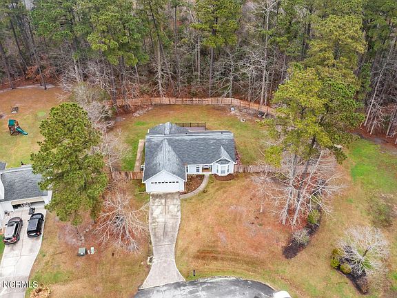 QUIET CUL-DE-SAC HOME IN THE DESIRABLE CHERRY BRANCH NEIGHBORHOOD!!! 3 bedroom, 2 bath home with 2 car garage, large fenced yard with over an acre. This home features and open living/dining area, galley kitchen and a split floor plan. Walk onto the large deck overlooking the large backyard perfect for hosting family and friends. Amenities include 2 pools, tennis courts, basketball court, playground and private river beach. Close to beaches and MCAS Cherry Point.