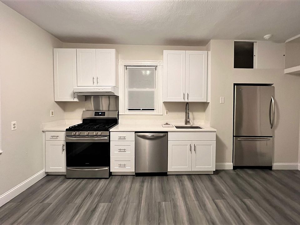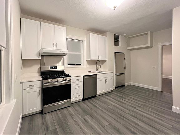 Large, renovated 3+ bedroom 2 bathroom apartment (2nd + 3rd floors) in a two-family home on the Somerville line. Features central air, hardwood floors, living room, dining room, and a renovated kitchen with granite counters and stainless appliances: dishwasher, gas stove/range. Balcony and deck. In unit laundry. Off-street parking (2 spaces) included. Pets are negotiable. Amazing location near Ball Square - tons of restaurants/shopping nearby; about a block away from the new station on the green line and 13 minutes to the red line in Davis Square. (Reference #175925) Available Now. Off-street parking spaces (2) included. In unit laundry. Broker fee = 1 month. Pets are negotiable with good references.
