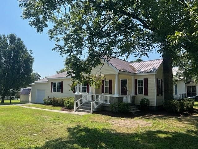 Classic bungalow-style home situated in the heart of Norlina. Nice level corner lot with shaded side yard and covered porch and rear deck to enjoy the outdoors. The 1 car-attached garage makes this home unique and is a really nice bonus. Vinyl siding and metal roof so very low maintenance exterior. The house has been nicely repaired and has lovely wood floors with unique patterns. The living room is a very good size with a fireplace. Double doors to the dining room with access to the deck. The kitchen has nice cabinet and counter space plus new appliances. The bedrooms are all very good size as well. Don't miss this chance at an affordable home in move-in condition. Call Today!!!