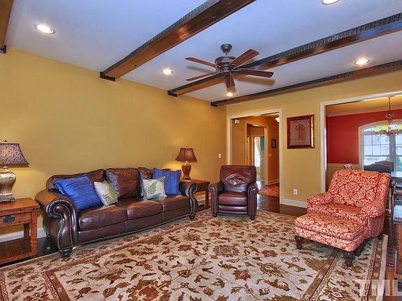 NEW Price~BRICK 4 Beds Custom Built~GRAND Entrance opens to Sep dining rm LOADED in trim~Family Rm showcases EXPOSED BEAMS, STONE Gas log fireplace~9' ceilings down~LOADED Kitchen:GRANITE, SS Frigidaire appliances, GAS cooktop, COPPER Farmhouse sink, Soft Hinge drawers, pullout drawers in PANTRY~1st Flr Master Boasts large WIC, MBA inclds GRANITE Dual vanity, TILE Floors, HUGE TILE Walk in Shower w/Rain head~3 guest rooms & 4 TOTAL Baths~2 Fin BONUS Rms + OFFICE+HOBBY rm~COV Back Porch, LEVEL/FENCED bkyrd