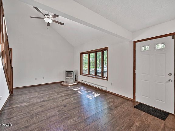 • Description: New flooring, ceiling fan, skylight, pellet stove