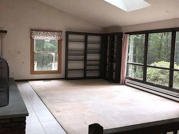 Must see contemporary ranch in a private setting, large living room with a fantastic 12 ft long fireplace with a built in wood box and Oak mantle great for entertaining, Master bath with 3 closets, main bathroom with plenty of room for a first floor laundry, with a little TLC this could be your dream home. Finished basement with a stone fireplace, bathroom and sauna. Needs some attention. Roof and skylight replaced in 2015, Failed title five and Central air does not work.
