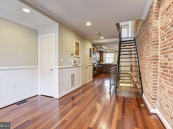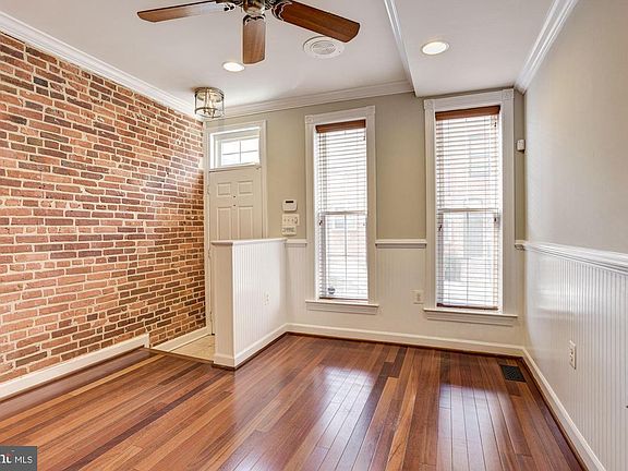 Beautiful rowhome in the heart of Historic Federal Hill offering exposed brick accent walls, beadboard wainscoting with a chair railing accent, crown molding, and gorgeous hardwood floors. Let the kitchen inspire your inner chef boasting stainless steel appliances, tray ceiling, 42" cabinetry, double oven, and granite counters. Relax and unwind in the primary bedroom suite featuring a custom built-in bookcase, a vaulted ceiling, and access to the private rooftop deck with views of the Baltimore skyline and is ideal for entertaining! The fully finished lower level provides a possible office or cozy media center highlighted by ceramic tile, a full bath, and a spacious laundry and storage room. A fenced patio provides a private space to spend time with family and friends or convert it to a parking pad for easy convenience. Major commuter routes include I-83, I-895, I-295, I-395, and I-695.
