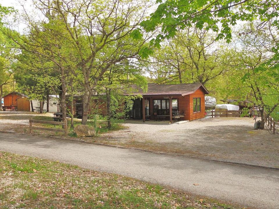 Fishing & RV Paradise! Located just steps from Table Rock Lake and nestled in the heart of RV-friendly Yogi Bear Jellystone Park, this cozy, fully-furnished 1BR, 1BA ONE-LEVEL cabin is ready and waiting. Enjoy a casual, open living-dining-kitchen combo that's perfect for entertaining, or step outside to enjoy family and friends from a wonderful covered patio that celebrates its natural surroundings. Retreat to a calm bedroom suite with walk-in closet, large surprisingly upscale bathroom and convenient laundry nook. Lovely woodsy corner lot offers ample parking for guests, with water and electric hook-up. Adjoining pull-thru lot offers 2 full hook-ups, propane tank and storage shed for an additional $29,000. Close to pool, playground, lake and boat launch PLUS all Branson has to offer!!