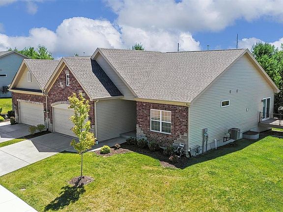 Beautiful luxury almost new Villa w/open floor plan. Don't wait long building times! Over 1600sq.ft w/upgrades galore. 9 ft ceilings, 5" baseboards, lever handles, 12X12 composite deck, garage 22ft deep, sprinkler system, beautiful brick/stone & architectural shingles. So much space in this Chef's dream Kitchen! Offers granite counters with huge center island 8FtX5Ft with sink & extra base cabinets. Recessed lighting, lovely pendants lights & tons of additional counter workspace. Loads of high quality 42" cabinets with crown molding & brushed nickel hardware, stainless steal appliances & walk in pantry. Gorgeous luxury plank vinyl flooring & upgraded carpeting/pad. Double doors to Owner's Suite with enormous closet! Both baths have raised height vanities. Double sink & beautiful oversized shower in Owner's Bath w/glass doors. Main Floor Laundry. Basement w/Egress window & rough in bath. Near shopping, HWYS & amenities. Wentzville Schools. Duplicate #22041696