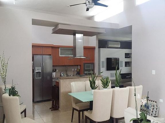 FOR RENT! - Modern property in large plot 900m / c, with 4 bedrooms (master with 2 w / c), 2.5 bathroom), spacious living room, remodeled kitchen with wine cooler, "family, laundry," spacious terrace and double carport. It includes air conditioners, solar water heater, microwave, 6 mini split units, TVs, "Home theater", refrigerator, stove, washer and dryer, electric gate, fans and others. The exclusive development is type "resort" because it has double access control, pool, clubhouse, golf course, etc. Rent includes maintenance.