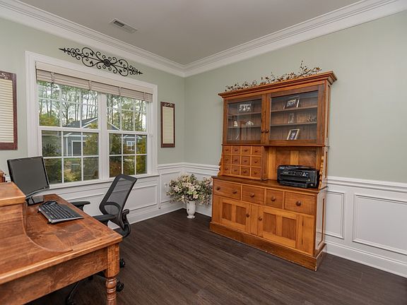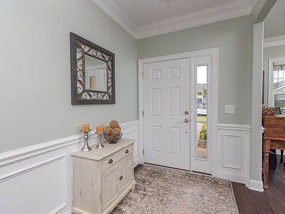Eaton's Crossing is a premier waterfront community on Lake Gaston. Enjoy features such as the assigned boat slip, clubhouse, in-ground pool, and the added security of a gated community. Both the pool & boathouse are conveniently located within steps. Fall in love with the open floor plan. The chef in your life will love the large kitchen ample storage, counter space along with island, pantry, soft close cabinets, stainless steel appliance, granite countertops, soaring 9ft ceilings. The primary suite has trey ceilings, spa bath in which you could spend hours. Highly coveted floor plan has primary suite & large laundry rm located on main floor. Office, guest rm, 1 full & 1 half bath complete the main level. Upper level has 2 guest rms & full bath. Relax & enjoy lake views from the screened porch. Two car garage & easy living as the lawn maintenance is covered. Spectrum internet available.