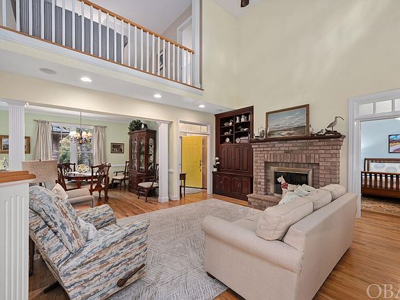 Tranquil Haven - A Luxury Retreat! Nestled among majestic live oaks and native flora on Roanoke Island's northern end, this 4-bed, 3-bath masterpiece, complete with ample bonus space crafted by renowned builder Buddy Gray, exudes elegance and comfort. The grand circular driveway and porte cochere welcome you to an impeccably designed home boasting vaulted ceilings, artisanal woodworking, and a cozy gas fireplace. Entertain in style with a massive fully-screened porch and sun porch for year-round enjoyment. The gourmet kitchen features cherry wood island, granite countertops, and hickory cabinets. The main level offers a serene owner's suite and a guest bedroom, while upstairs, a loft-style space overlooks the lower level. Two additional bedrooms, a bonus room, and an office provide ample space. Above the garage, a 346 sqft versatile space, with separate entrance through the garage, awaits your imagination. Outside, enjoy manicured landscaping, a fire pit area, detached workshop, and attached additional garage. Quality electrical systems, generator hook-up, and versatile water system including county access and well with water softener ensure convenience and comfort. Complete with deeded sound access just down the tree-lined street, this offering is truly unparalleled. Additionally, the septic capacity for this home is already rated for 5 bedrooms! Experience a myriad of extraordinary features—this unique opportunity is not to be missed!