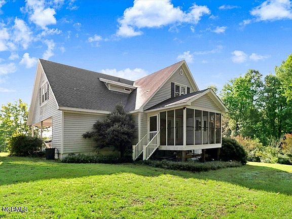 This charming two-story homes offers 4 bedrooms and 2.5 bathrooms and is situated in a cul-de-sac. The property spans approximately .60 acres, providing ample outdoor space. You can start your day with a cup of coffee on the partial wrap-around deck or relax in the screened in porch. The mature landscaping features a variety of plants including a blueberry bush, a mulberry bush, a peach tree, and a rose bush. As you enter the home you will notice the large living and dining area The owners suite is conveniently located on the first floor, which includes a walk in closet. Travelling up the stairs, you will be greeted by 3 additional bedrooms, all carpeted and featuring generously sized closets. The upstairs bathroom is equipped with dual sinks and granite countertops offering both style and functionality.