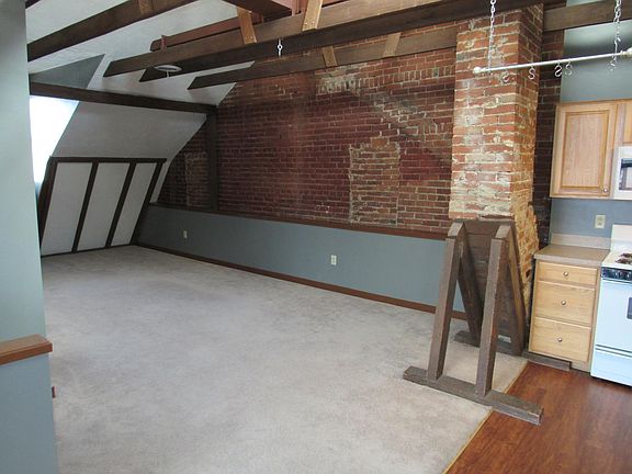 One-of-a-kind 1 BR Third Floor apartment with Living Room, Dining Room/Kitchen, Full Bath, Laundry, Vaulted Ceiling with Exposed Rafters and Exterior Covered Deck. Includes A/C, refrigerator, dishwasher, range, microwave, ceiling fans, sky lights and washer/dryer. Utilities are in addition to the rent. No Pets; No Smoking. Monitored fire alarm system. Intercom; Entry Control to front entrance. On-site parking space. Located one block north of Center Square in Downtown Hanover above Visiting Angels, across from Royal Farms and next to municipal parking lot. Rental Application with $25.00, non-refundable fee, per credit check. All utilities in addition to rent.