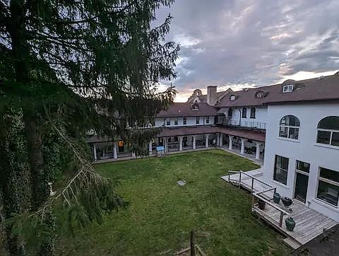 Designed by a well-known architect and built to house cloistered Carmelite nuns (1915 to 1974), the building was converted into apartment units in the 80s, and the units are recently remodeled. This extra spacious 3 bedroom 1 full bathroom apartment looks out into the cloistered courtyard. The rare, Spanish-styled architecture is a treat to encounter. The property is located on the top of a hill in a premier residential area. Very peaceful, and quiet with a great view. It is minutes away from downtown with many restaurants and activities. Living in this apartment is like living in a huge mansion with your own smaller house. You have your private entry, 3 large-size bedrooms, 1 full-size bathroom, a large kitchen with dining area, very large living room and your own outdoor sitting area and patio. At the same time, you have access to the great room, office, back yard with gardens, and courtyard with patio. A washer and dryer are available in the basement. Plenty of parking space in the private driveway. Tenants pay for electricity. Water and garbage is optional at $40/person/month or you can set up your own water and garbage collection. Internet is optional at $35/unit. The unit can be leased with furniture at a higher rate.