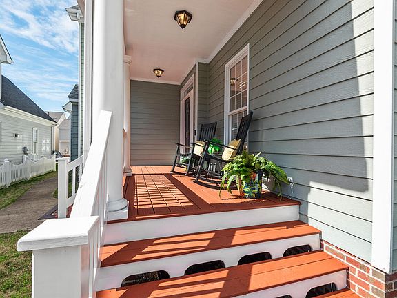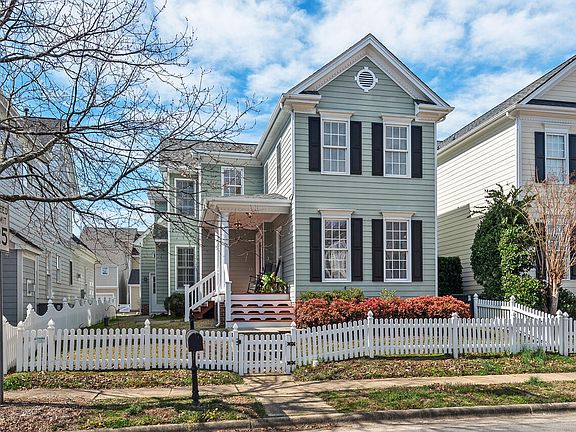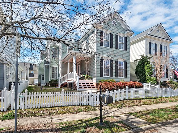 Experience the charm of this Charleston-style home in Cary's Carpenter Village! Recently refreshed with a newly painted interior, restained deck, freshly painted rails, and professional staging, this home is move-in ready. Updates include a new roof (2022), new HVAC (2021), and modern granite countertops in the kitchen and baths. The kitchen shines with newer stainless steel appliances, ample cabinetry, a breakfast bar, and a butler's pantry. With southeastern exposure, natural light enhances the hardwood floors and elegant details like the coffered ceiling and wainscoting in the dining/sitting room. A bonus room with a private staircase offers flexibility as a fourth bedroom, office, or entertainment space. The primary suite features a walk-in closet, dual vanity, garden tub, and tiled shower. Enjoy front and back porches, alley garage access, and a short walk to the pool, green spaces, and tennis courts. This home blends classic charm with modern convenience!